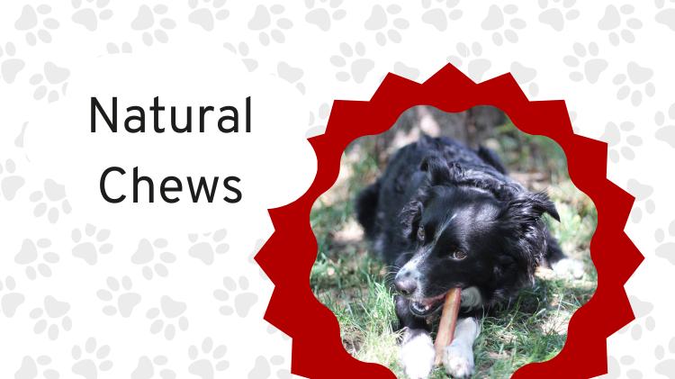Natural dog chews are edible treats that take longer to eat. These chews will keep your dog entertained for a period of time or get their teethe cleaner than they were before! Dog chews are great to allow your dog to relieve stress, fight boredom, and get a snack.